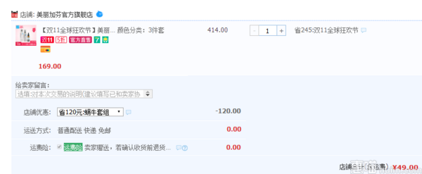 天猫旗舰店售价169元,可领取120优惠券,券后实付49元包邮到手。