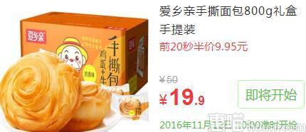 前20秒半价# 爱乡亲 手撕面包 800g 19.9返9.9元