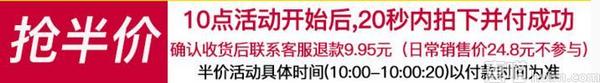 天猫商家10点特价19.9元,前20秒拍下付款的喵友还可以享受半价优惠收货返现9.95元,实付9.95元包邮,近期好价啦!喜欢可入。