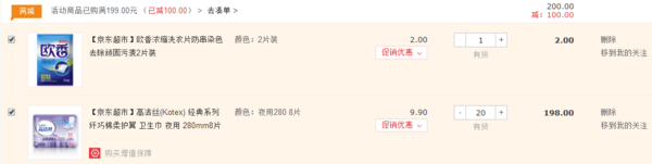 高洁丝 棉柔卫生巾 夜用280mm*8片*20件+凑单 100元包邮(满199-100)