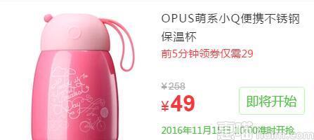 前5分钟# OPUS 304不锈钢保温大肚杯 300ml 29元包邮(49-20券)