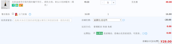 拉高家颜值# 北欧宜家 现代简约客厅吊灯 29元包邮(49-20券)