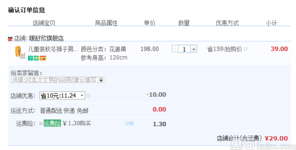 天猫旗舰店售价39元,可领取10元优惠券,券后实付29元包邮。