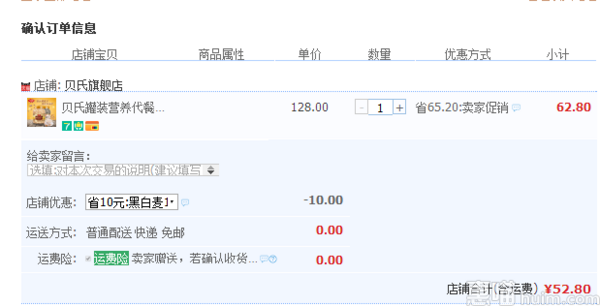 天猫旗舰店售价62.8元,可领取10元优惠券,券后实付52.8元包邮。