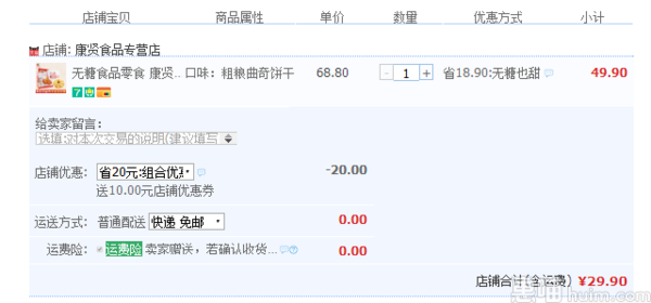 天猫专营店售价49.9元,可领取20元优惠券,券后实付29.9元包邮。
