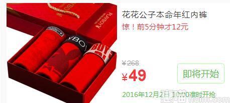 前5分钟# 花花公子 本命年红内裤 3条装 12元包邮(49-37)