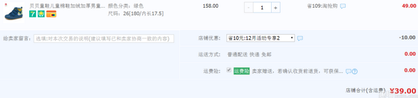 天猫旗舰店售价49元,领取10元优惠券,券后实付39元包邮,喜欢的家长可给孩子带一双啦~