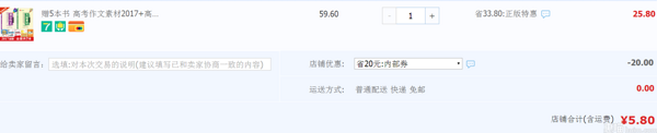 天猫专营店现售价25.8元,领取20元优惠券,实付5.8元包邮到手,写个什么议论文都会用到的,高考作文的高分在于素材取胜,多积累点是不会错!