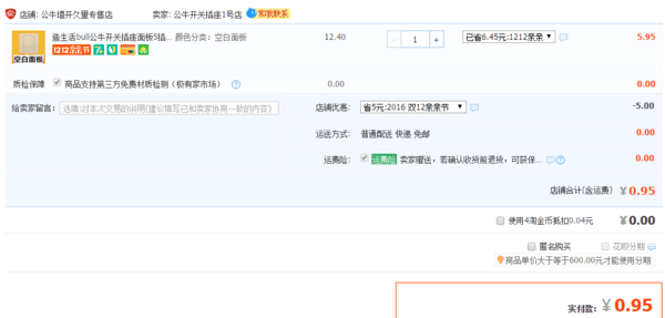 淘宝企业店铺售价5.95元,价格下方可领取5元优惠券,券后实付0.95元包邮,需要的速速了!