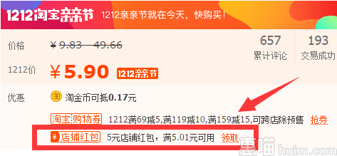 淘宝企业店铺售价5.9元,可在价格下方领取5元店铺红包,实付0.9元包邮到手,好价,喵友们速上!