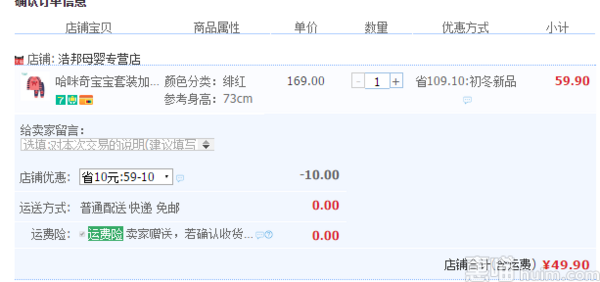 天猫专营店售价59.9元,可领10元券,实付49.9元包邮。
