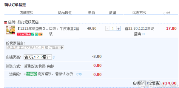 天猫旗舰店售价17元,可领取3元券,实付14元包邮。
