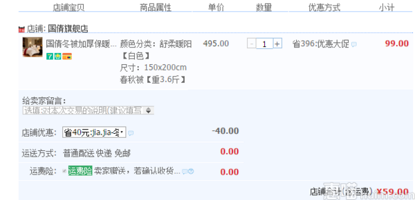 国倩 冬季太空百保暖棉被 2.3斤 59元包邮(99-40券)