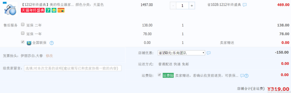 美的 家用手持静音强力吸尘器 319元包邮(469-150券)