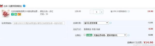 居家必备# 比趣 冬季保暖加厚家居鞋 14.9元包邮(19.9-5券)