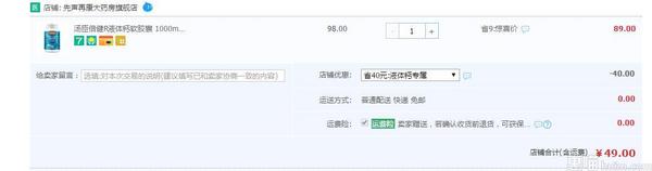 天猫旗舰店售价89元,领取40元优惠券,券后实付49元包邮,还送维生素C+E2瓶共60片。