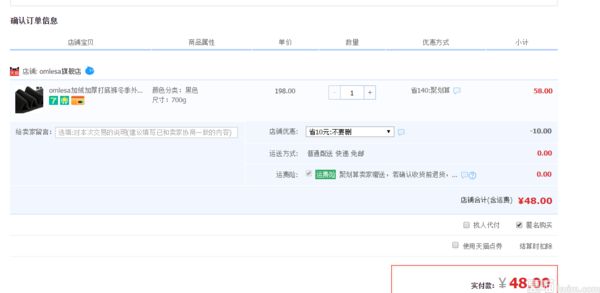 天猫旗舰店售价58元,领取10元优惠券,券后48元包邮,怕冷的妹子还可以购买800g的同款哦,一样可以使用优惠券。
