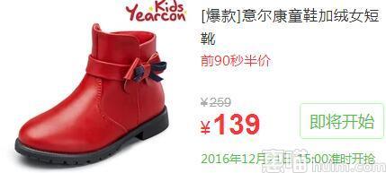 前90秒半价# 意尔康 儿童短毛绒短靴 15点 139返69.5元