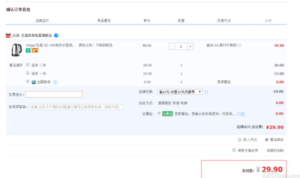 天猫旗舰店售价39.9元,领取10元优惠券,实付29.9元包邮,同款在超市售价在50元以上。
