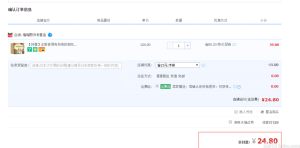 天猫专营店售价39.8元,领取15元优惠券,券后24.8元包邮。