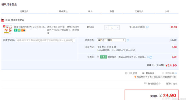 天猫旗舰店售价39.9元包邮,领取15元券,实付24.9元包邮。