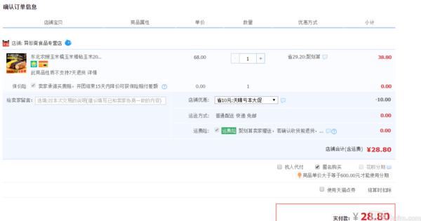 天猫专营店售价38.8元,领取10元优惠券,实付款28.8元包邮。