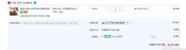 天猫旗舰店售价39.8元,领取20元券,券后实付19.8元包邮。