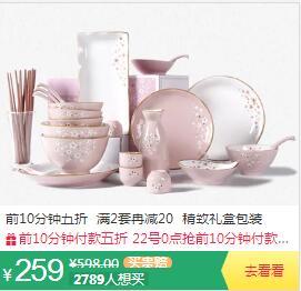 前10分钟半价# Inscription 樱花手绘陶瓷餐具套装 22日0点 129.5元(259-129.5)
