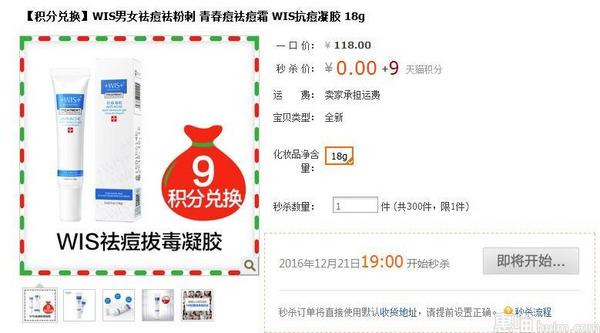 天猫旗舰店19点限时特价0元,只需要花费9天猫积分就可以兑换咯!限量300件,手慢无哈!双11、双12购物囤够天猫积分的喵友记得蹲点抢购咯!