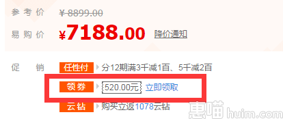 苏宁售价7188元,价格下方领取520元优惠券,券后实付6668元包邮。