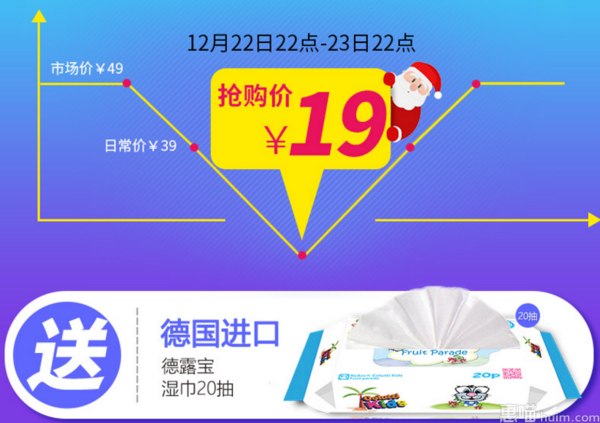 天猫旗舰店22日22点开抢,原价29元,成功拍下立减10元,即实付款19元就能到手,还送德国德路宝湿巾20抽。