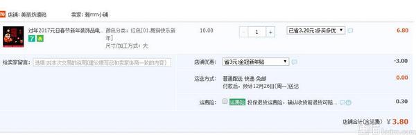淘宝店铺售价6.8元,可领取3元优惠券,券后实付3.8元包邮,多款选择~