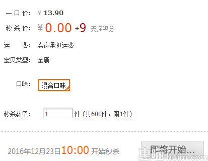 天猫旗舰店特价0元,仅需9个天猫积分即可,超值的,10点开抢,限量600件,喵友们记得准时蹲点喔~