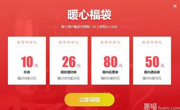 京东小白为大家准备的年终福袋来啦,只要你的小白信用≥30分即可随意领取哦,小编的福袋里就包含了满200-10券以及机票800-80券~