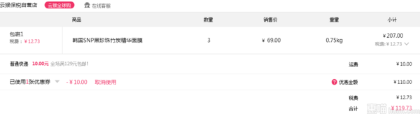 云猴网售价69元/盒,买3盒,参加199-100活动,叠加1226礼包10元券,实付119.7元包邮,折每盒约40元哦~