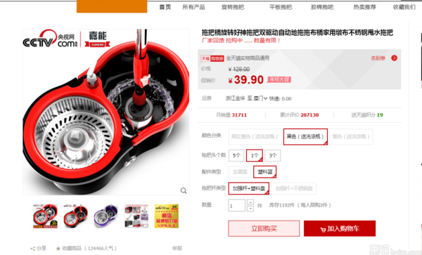 这款嘉能的自动旋转桶拖把能够省去传统拖把费力拧水的程序,采用双驱动旋转筒快速甩干拖把,省时省力,拖把头的吸水力也是极强的,能够很好的吸附无水无垢,是你居家打扫的好帮手。