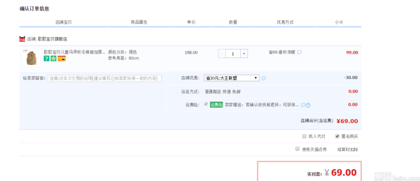 天猫旗舰店售价99元,领取30元优惠券,实付69元包邮。