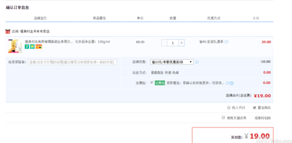 天猫专卖店售价29元,可领取10元优惠券,券后实付19元包邮到手,去角质可以保持一周1~2次~