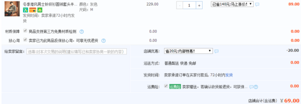 淘宝店现售价89元,可领取20元优惠券,券后实付69元,港风十足啦~