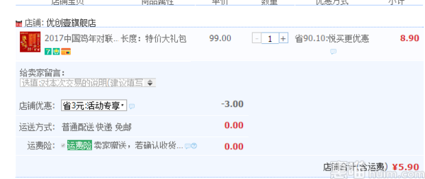 新年快乐# 优创壹 鸡年春联大礼包 5.9元包邮(8.9-3券)