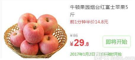 前1分钟半价# 纽顿果园 烟台红富士苹果5斤 21点 14.9元包邮(29.8-14.9)