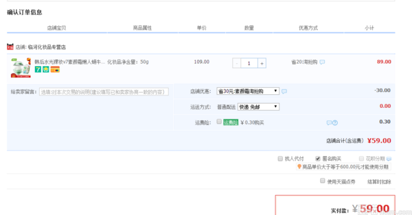 天猫专营店售价89元,领取30元券,实付59元包邮。