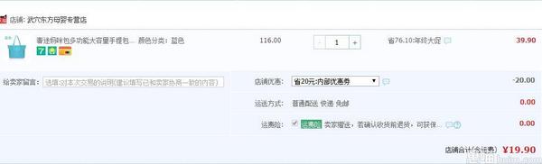 奢途 多功能大容量手提妈咪包 19.9元包邮(39.9-20券)