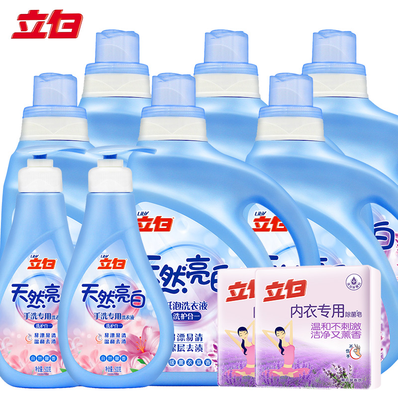 亮白洗衣液1kg*6瓶+手洗500g*2瓶+内衣皂101g*2瓶售价179元,拍下用券,实付79元京东商城¥79