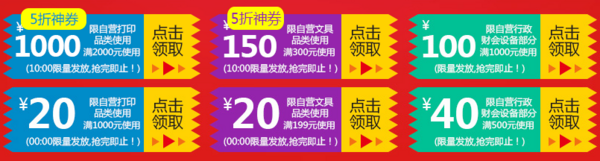京东针对办公生活专场,放出2张5折神券,券面额分别为满2000-100券和满300-150券的力度,另外还有部分小额的优惠券,喵友们也可以一并领取哦~