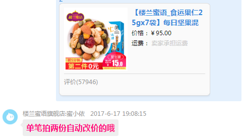 天猫旗舰店10点聚划算开团售价29.9元,前10分钟第2件0元,拍2立减,实付29.9元共2件,折14.9元/件,食来运转,补充能量,天天好心情~~