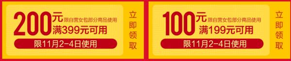 京东开启自营女包专场大促,活动页面可领取满399-200券,满199-100券,优惠券限11.2日-11.4日使用,场内活动品类包含有国际大牌,商场同款,时尚潮牌,同时活动页面还有爆款直降专区,叠加优惠券,入手更实惠,感兴趣的喵友们可以入场挑选一番哦~