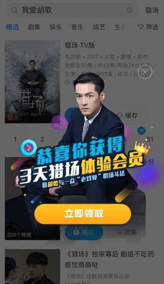 生活福利系列# 优酷APP 关键字搜索 赢3-10天体验会员
