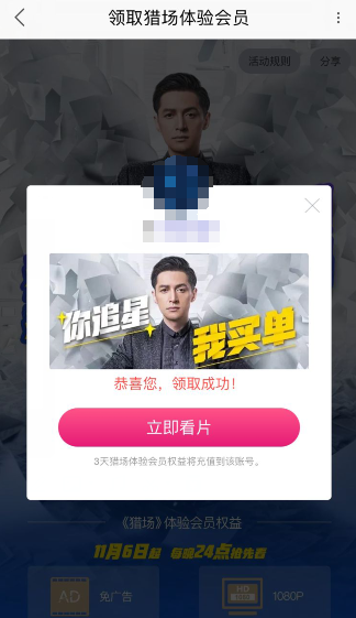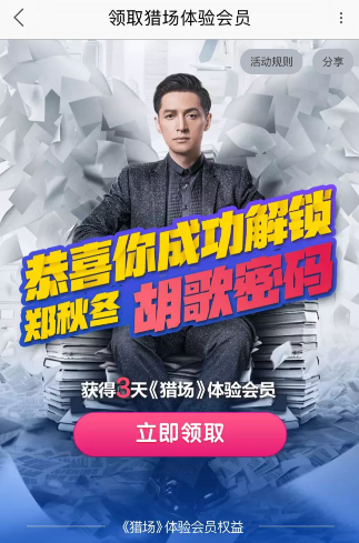 打开优酷App,搜索“我爱胡歌”,进入活动页面,领取3-10天的会员权益,有需要的喵喵们可以试试哦~