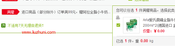 然后留住你小编亲测在购物车页面还可领取200ml的牛奶两盒,这样的话就更划算了,多少需要些运费,例如北京是4元运费,划算的啦。